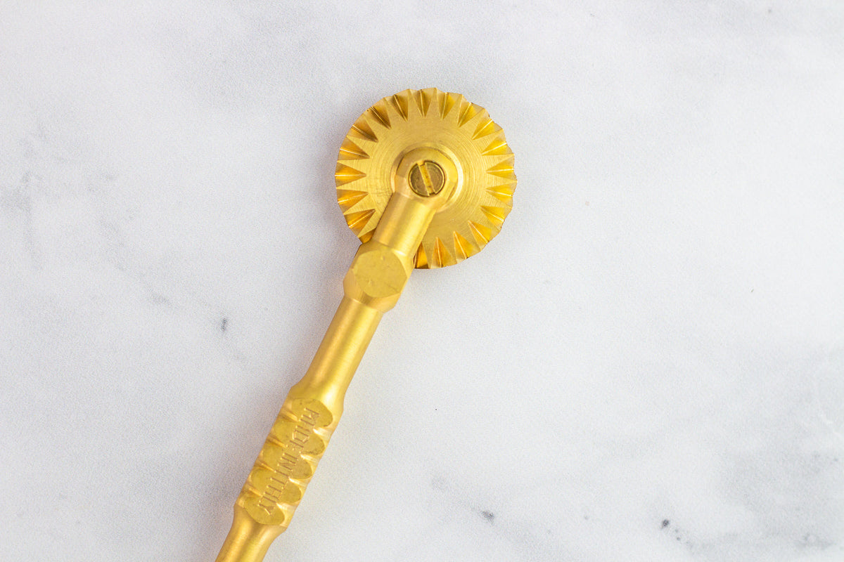 Brass has higher malleability than other metals. This means that when a manufacturer is creating pasta tools molded out of brass, they are able to get a much more precise mold cut. Moreover, brass has a good amount of weight to it. While this might sound like a negative quality, it’s a useful feature when cutting out pasta: the brass naturally presses down on the dough with little effort, leaving a more defined and even cut.