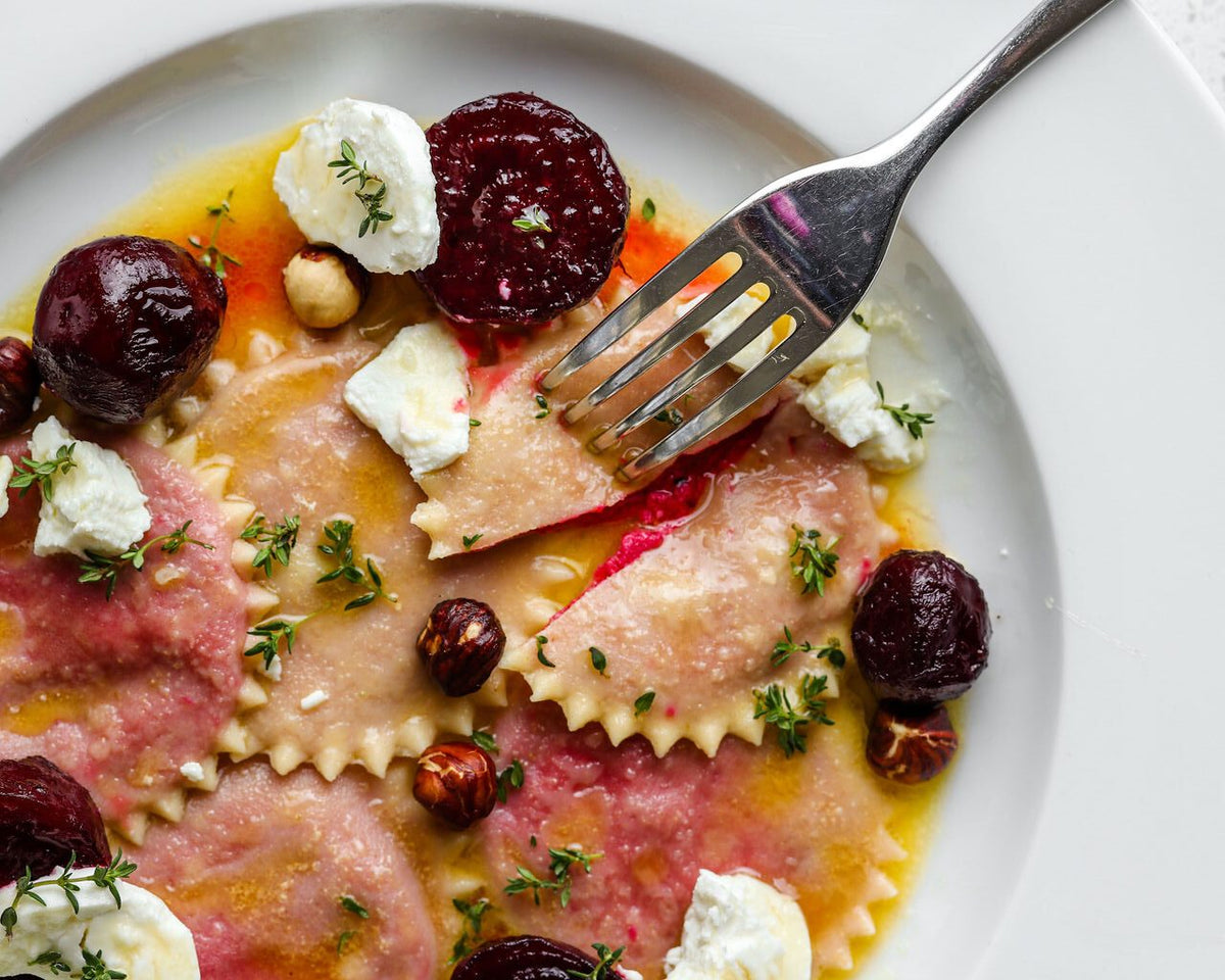 Beetroot, Goat Cheese, and Hazelnut Ravioli