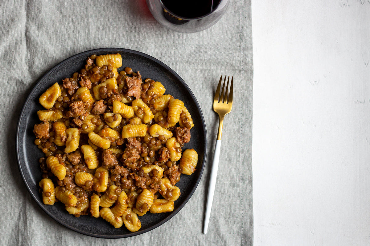 Here we’re paying homage to this iconic dish, with potato gnocchi bathed in a rich sausage and lentil ragù.