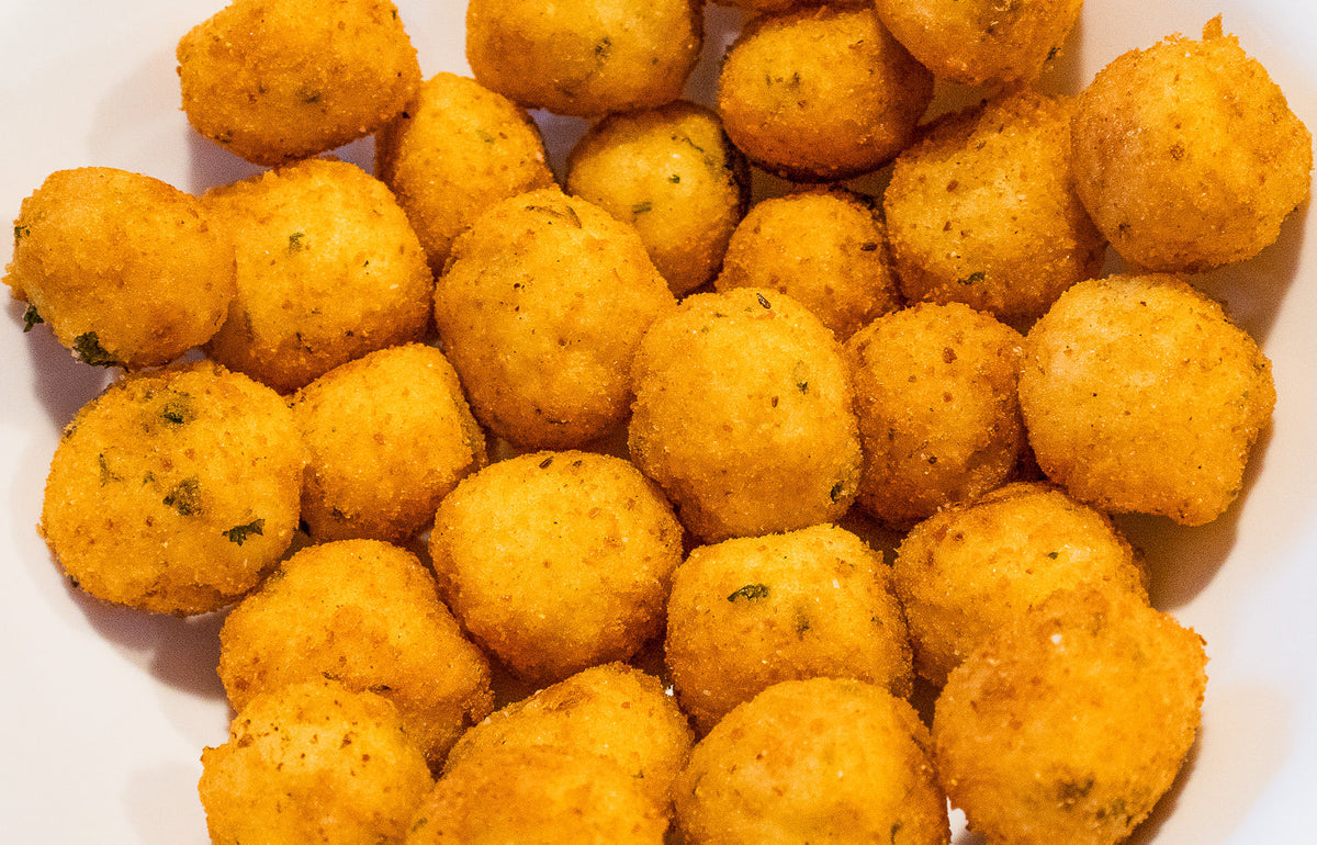 At least once a month, my brother Michael, cousin Victoria and I would play ball in the hallway with my nonno while my nonna, aunt, and mom prepared polpette di riso before dinner. As soon as they’d cooled off enough to handle, we kids would run in, hop up with our knees on the chairs, and pop as many rice balls into our mouths as we could get away with before dinner. Then we’d have them as a side with our meat and vegetable dishes too. There were always plenty to go around.