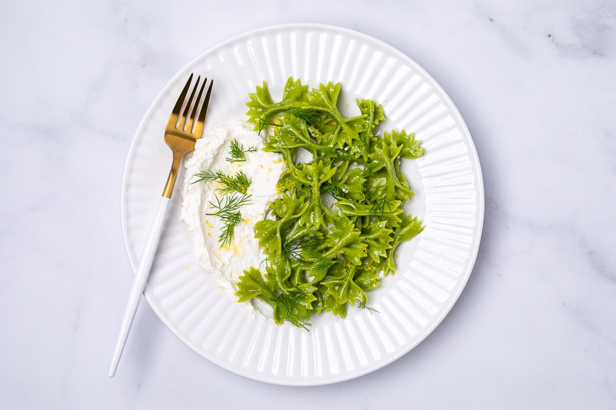 Spinach & Dill Farfalline with Whipped Goat Cheese