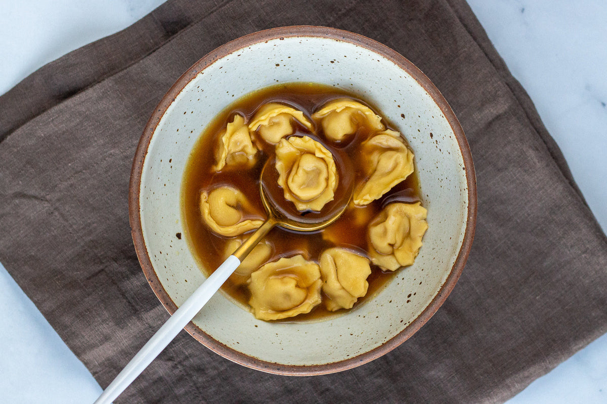 French onion soup meets cappelletti in brodo in this half-French, half-Italian dish.