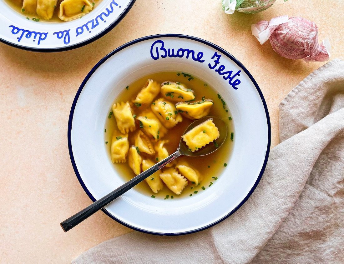 1. Bring the broth to a gentle simmer. Carefully add the agnolotti, shaking off any excess flour, and cook until almost tender, about 2½ minutes (you might need to do this in batches).